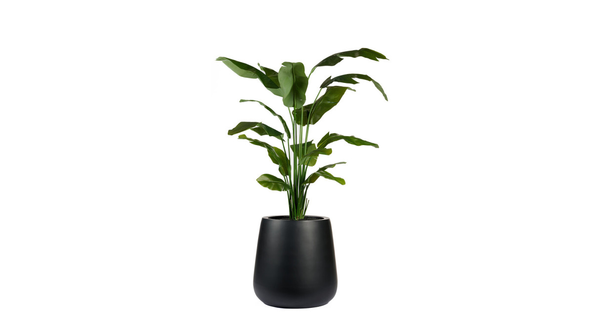 De artificial Strelitzia heeft geen zonlicht, water of onderhoud nodig. Afstoffen is voldoende.