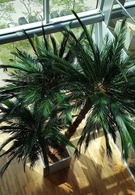 De palmbomen zijn een populaire keuze voor interieurbeplanting. Ze passen in verschillende groenconcepten, door de maatwerkmogelijkheden. Het soort stam dat wij gebruiken en mogelijkheden in maatvoering zijn afhankelijk van de voorraad. De prijs baseren wij op afmetingen.